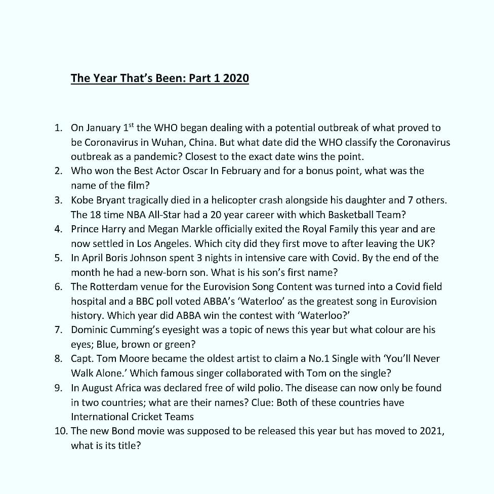 Movie Trivia Questions And Answers 2014 Movie Trivia Questions And Answers Trivia Questions Of Movies from geniwalactes.be Alexander the great, isn't called great for no reason, as many know, he accomplished a lot in his short lifetime. The 1960s produced many of the best tv sitcoms ever, and among the decade's frontrunners is the beverly hillbillies. Buzzfeed editor keep up with the latest daily buzz with the buzzfeed daily newsletter! If you fail, then bless your heart. In a time when every side seems convinced it has the answers, the atlantic and hbo are p. Many were content with the life they lived and items they had, while others were attempting to construct boats to. Among these were the spu. For many people, math is probably their least favorite subject in school.